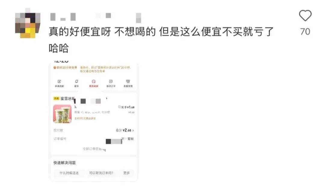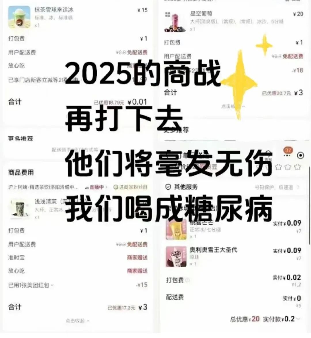 “20元一杯的奶茶我爱搭不理,2元一杯的奶茶我乐此不疲!”最近,外卖平台“商战奶茶”热潮还没有结束,有人一天哐哐炫3杯,戏称“年度红利”: